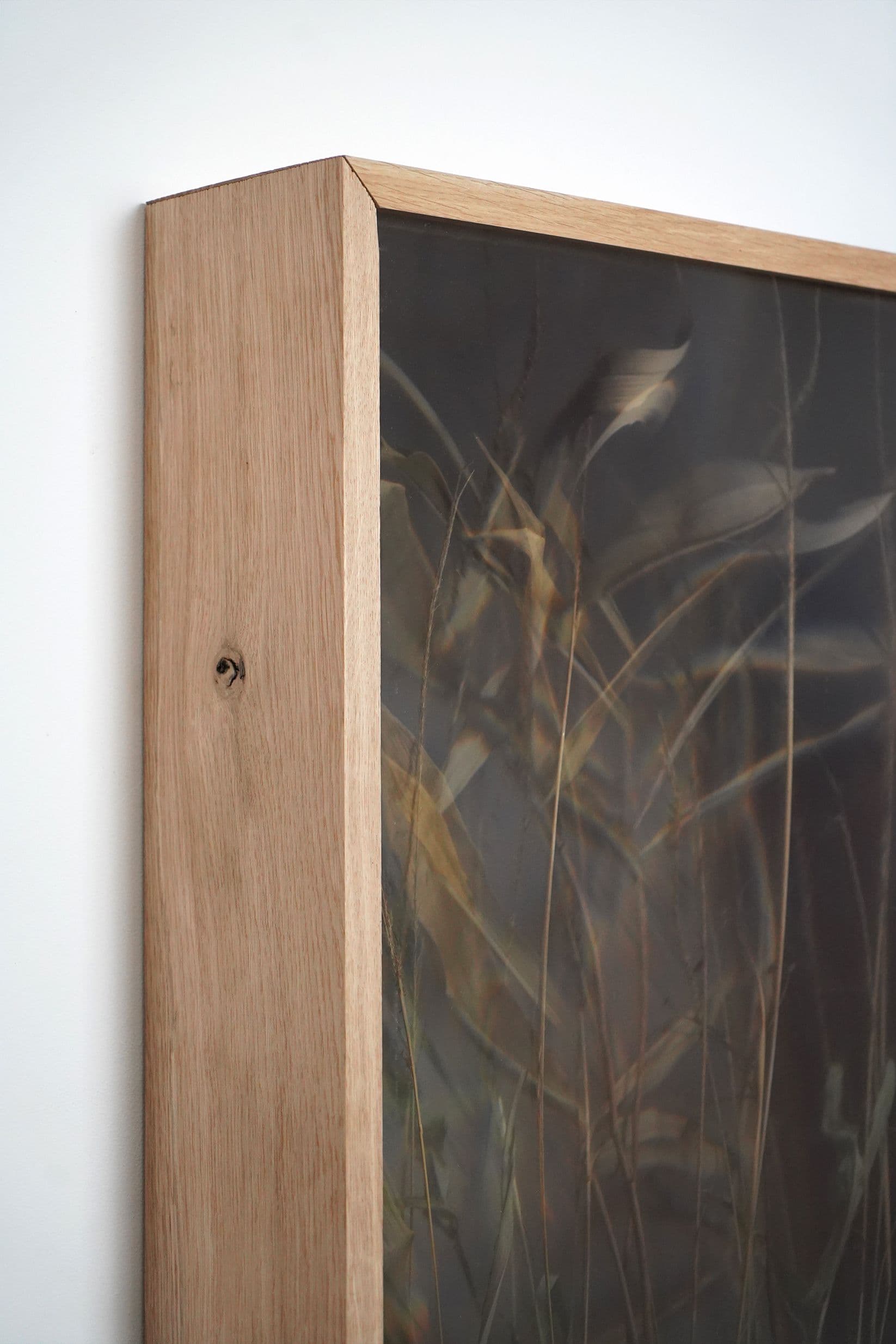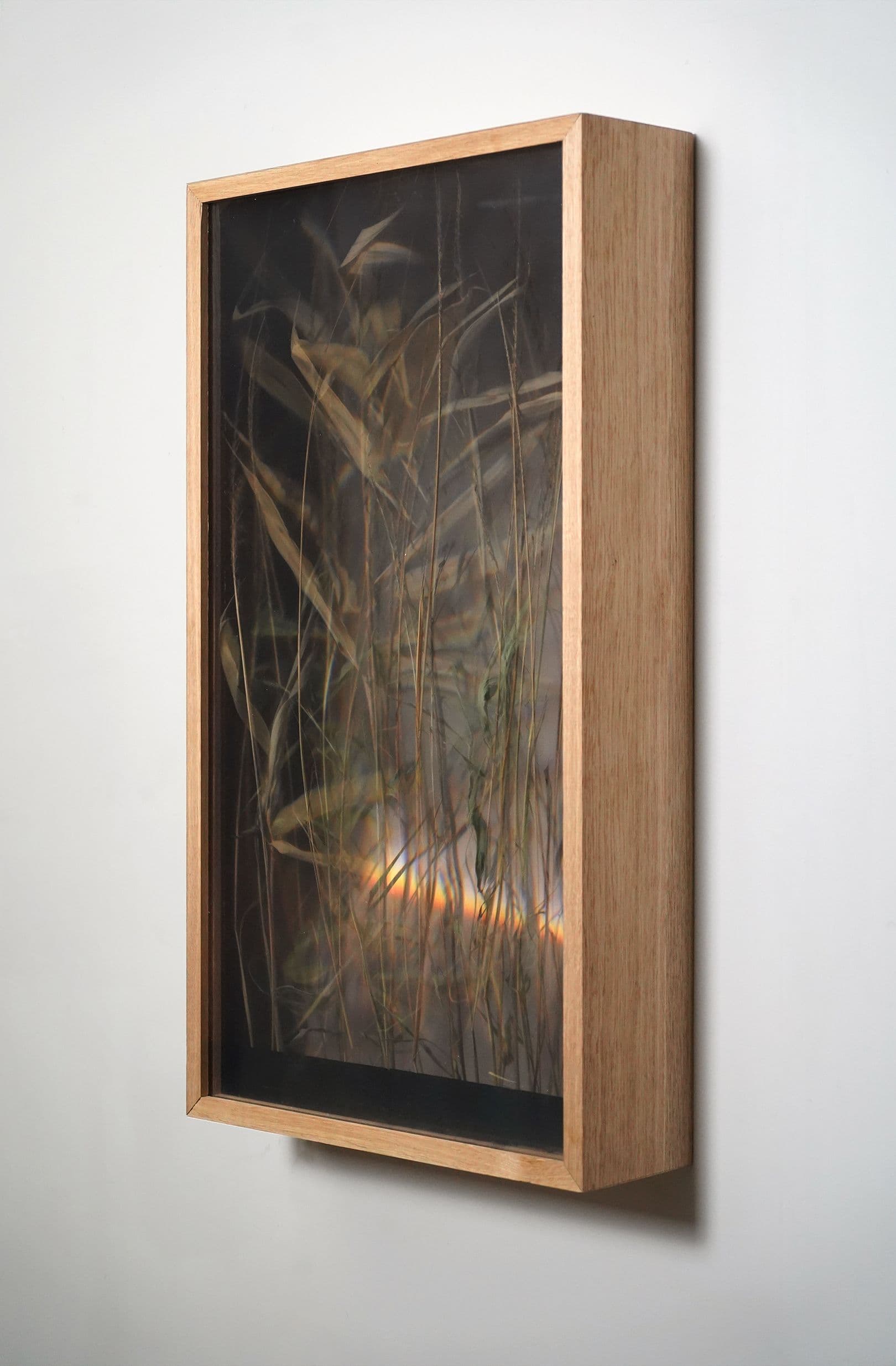 Chacun des caissons lumineux révèle des plantes qui poussent spontanément dans les ruines du Jardin d’Agronomie Tropicale de Nogent-sur-Marne. La vitre fumée agit comme un écran et les transforme en images, baignées dans un éternel crépuscule. C’est une fenêtre sur la mémoire floue du lieu, que ces végétaux portent en eux.